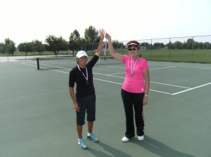 On Tuesday, September the 25th, the Boise Area Pickleball Association (BAPA) held their first monthly round-robin style club tournament. The tournament was held at the Hobble Creek Park’s tennis/pickleball courts. A great time was had by all. There were 8 ladies and 12 men vying for the gold. All players played five games and with each game they had a new partner, which made things interesting and fun. The results were: